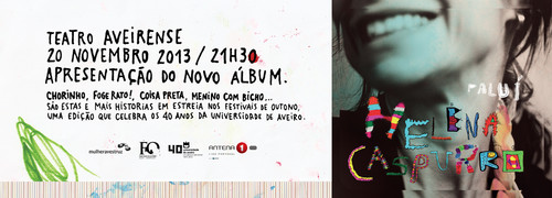 HELENA CASPURROCasa da Música // 24 Maio Apresentação do álbum 'Paluí'«Navegar», «Chorinho», «Foge Rato!», «Coisa Preta», «Menino com Bicho»... são estas e mais histórias que Helena Caspurro cria, conta e (en)canta neste seu novo álbum, 'Paluí', um CD Antena 1 que celebra os 40 anos da Universidade de Aveiro - em espectáculo pela primeira vez no (...)