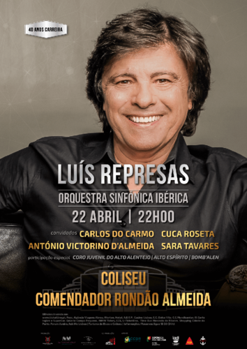 Luis Represas comemora 40 anos de carreira em Elvas com convidados muito especiais | 22 de Abril | Coliseu Comendador Rondão Almeida No próximo dia 22 de Abril pelas 22h00 o Coliseu Comendador Rondão Almeida – Elvas receberá a maior produção alguma vez feita neste espaço. A celebrar quatro décadas de carreira, Luís Represasé um dos canta-autores mais acarinhados da música popular portuguesa e reconhecido pela composição de algumas das canções mais marcantes do (...)